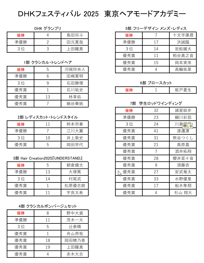 DHK FESTIVAL 2025 入賞者一覧
